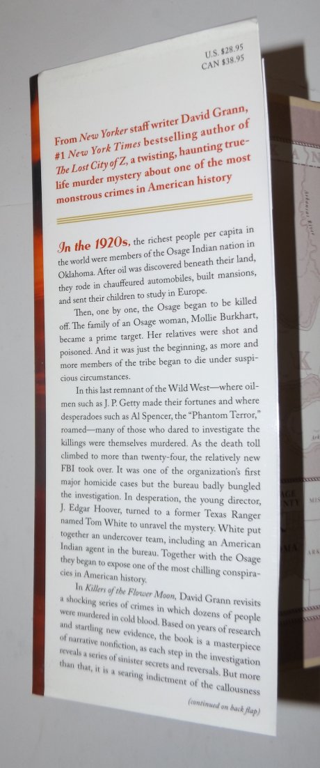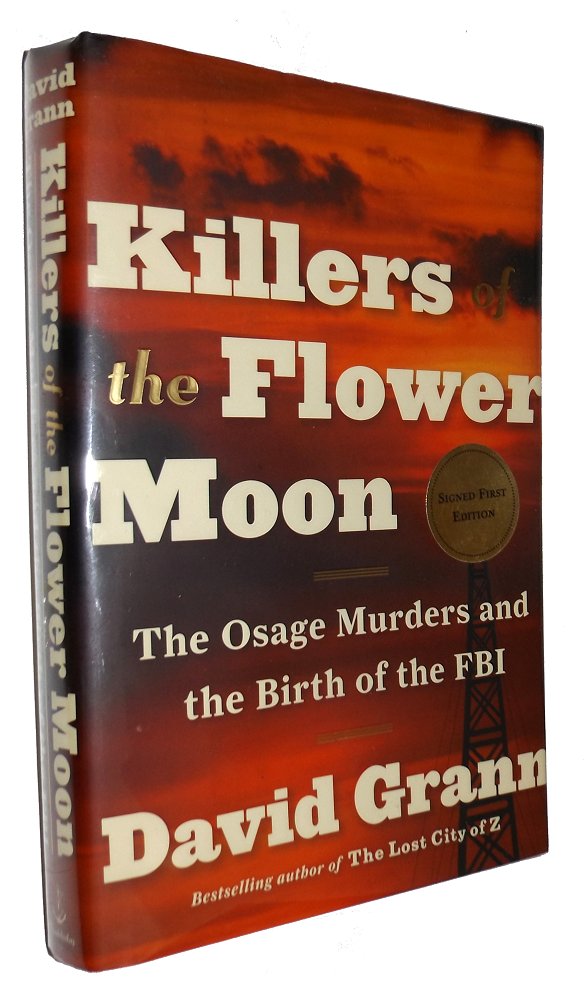 A scarce paperback - KILLERS OF THE FLOWER MOON New York Doubleday 2017175.00First edition.Signed on the front flyleaf.Near fine, in a near fine dustjacket with slight edge wear, with the label “Signed First Edition” affixed to the front cover.