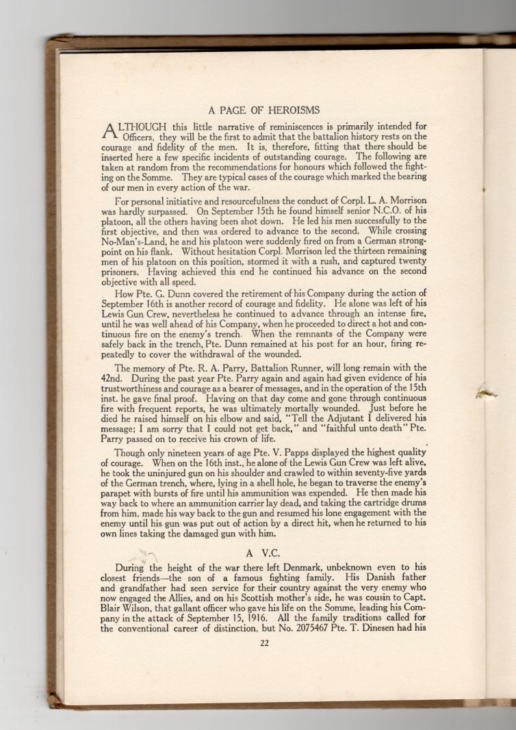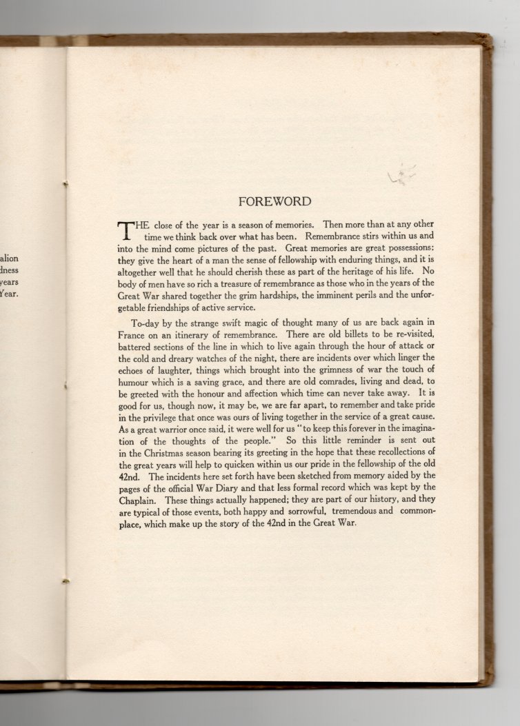 (49) pages with photos.Softcover staple-bound book, size is 5 1/2" x 8".Not only a church history, but also a local history of Foldens, Ontario, Canada. Published to commemorate the original little frame church which at time of publication (1911) was being replaced.01790View Full Details - ODDS AND ENDS FROM A REGIMENTAL DIARY No place no publisher no date (ca 1918-22)185.00Condition is near fine with a touch of wear to the corners and spine ends.
