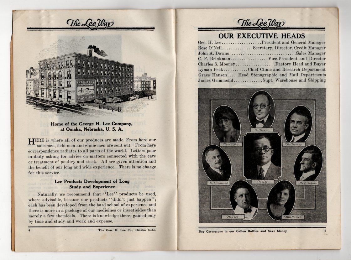 30 pages.8vo.A very scarce publication: "A pot-pourri of memories by the padre of the 42nd battalion sent to all ranks as a Christmas card." Cf. Dornbusch. An informal document covering some of the ups and downs of the 42nd Battalion (Royal Highlanders of Canada), CEF.01788View Full Details - A STORY OF THE LEE WAY PREPARED AND COMPILED BY MEMBERS OF OUR ORGANIZATION Omaha, NE The Geo. H. Lee Company 192545.00Condition for this softcover book is good with some edge wear, some wear to corners and spine ends, small chips to the front cover bottom of spine and top right corner, small tear back cover top of spine, distributor's stamp on first page, small tears along the staples.