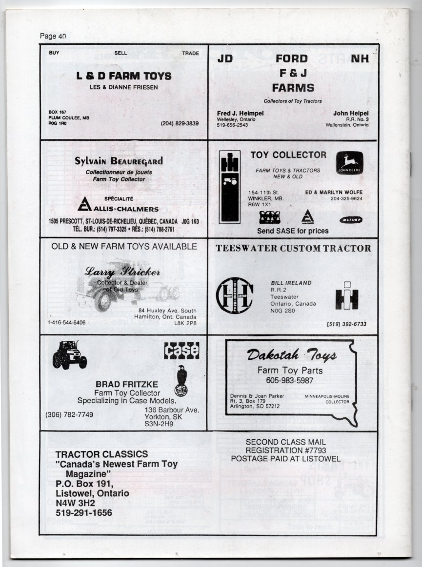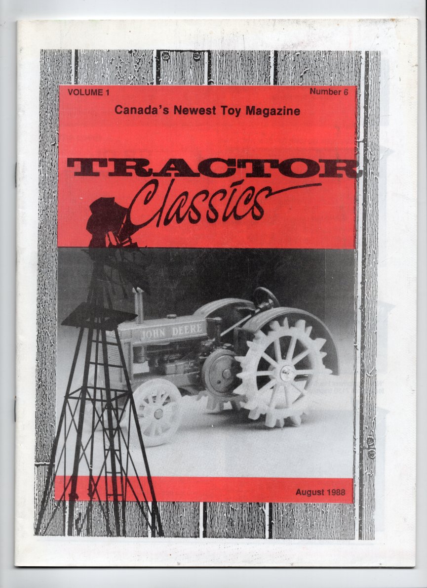 Very scarce. - TRACTOR CLASSICS. Volume 1, Number 1 to Volume 4, Number 6. “Canada’s Farm Toy Magazine”. 8) (First 4 Volumes, 24 issues in total.) Listowel, ON Tractor Classics 1987-1991175.00Journals, 8 ½” x 11”, issues range from 20 pages to 32 pages, most are 32 pages. The first issue has a few stains along the top otherwise all issues are in near fine condition. Journals, size is 8" x 11".Published bimonthly in Listowel, Ontario, devoted to the farm toy tractor collector, with information on shows, collectors, and new tractor toy models available.01834View Full Details