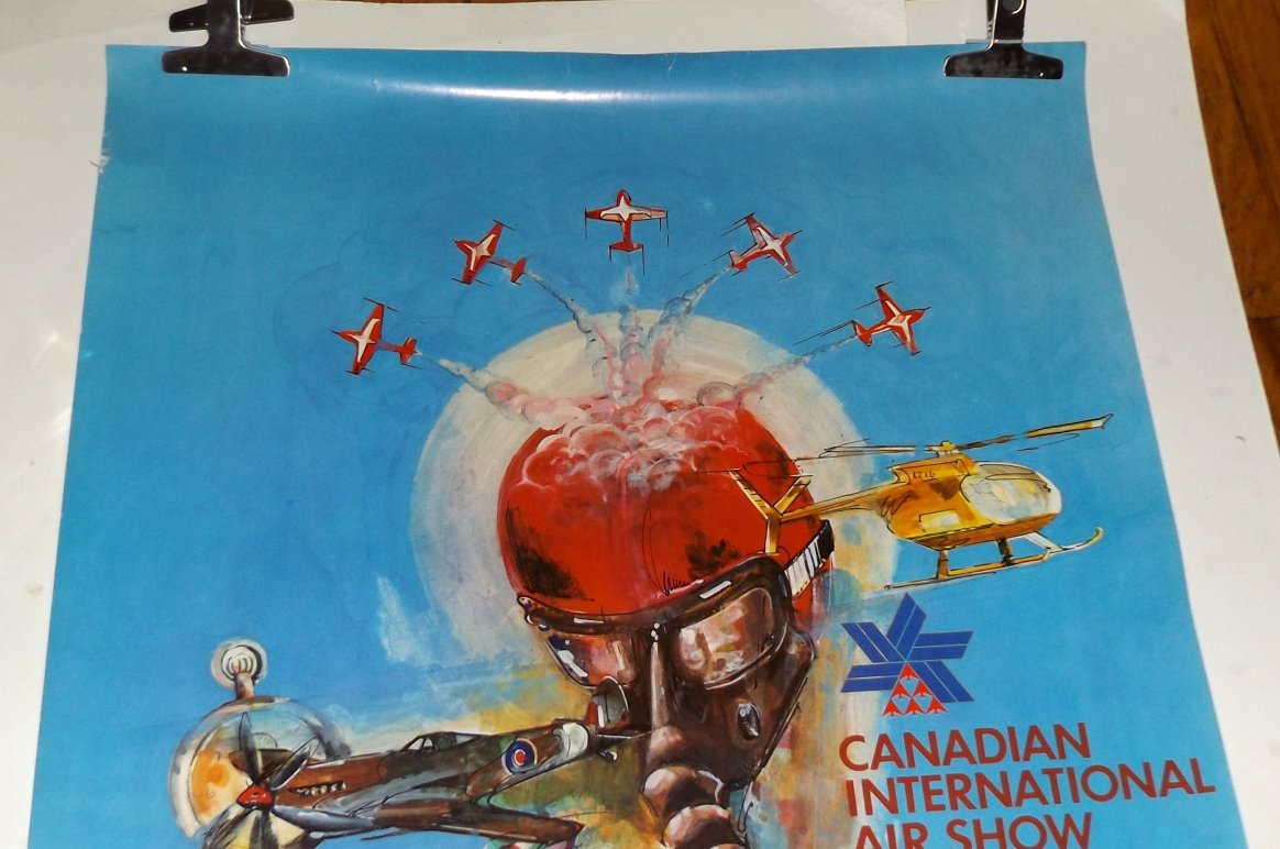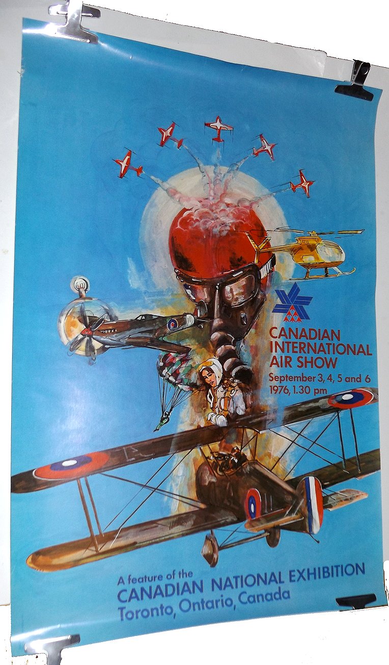 Print will be shipped rolled. - CANADIAN INTERNATIONAL AIR SHOW … 1976. A FEATURE OF THE CANADIAN NATIONAL EXHIBITION TORONTO, ONTARIO, CANADA. (Original Poster) No place no publisher 1976100.00Condition for this poster is better than very good but not quite near fine, with a bit of wear and small tears and a very small chip to the poster’s top left corner. Size is 24” x 36”, poster printed on one side.Original poster for the 1976 Canadian International Air Show held during the Canadian National Exhibition.01821View Full Details