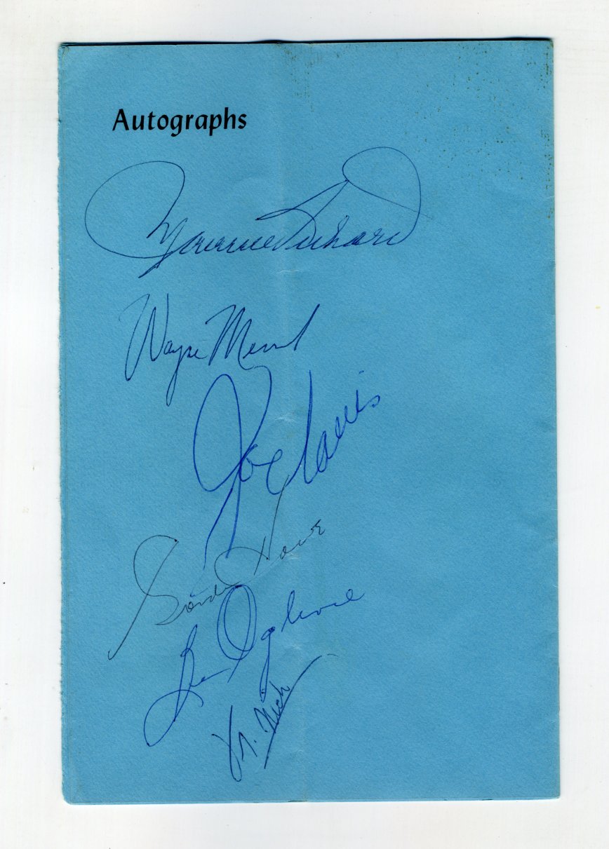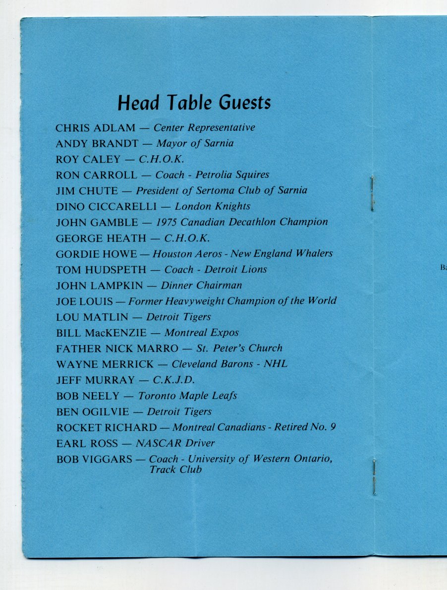64 pages with illustrations.Small 8vo. (5” x 7”), pictorial wrappers.“"Manhood Perfectly Restored" by Civiale Remedial Agency is a medical guide written in the late 19th century. The publication addresses issues related to male sexual health, particularly focusing on conditions such as impotence, spermatorrhoea, and nervous debility. It presents the Civiale Urethral Treatment, which claims to be an effective and safe remedy for these ailments. The beginning of the text introduces the Civiale Urethral Method and provides a stark warning to men about the consequences of excessive indulgence and self-abuse. It emphasizes the physical and mental toll of such practices, outlining how they can lead to despair and various medical conditions. In this opening, the text serves as both a promotional piece for the Civiale Remedies and an alarmist account highlighting the severities of the discussed health issues, aiming to persuade readers of the urgent need for medical intervention and treatment through their specific methods.” (Project Gutenberg description).01792View Full Details - SIXTH ANNUAL SARNIA SERTOMA SPORTMEN'S DINNER JUNE 23rd, 1977 Program (1977 Program signed by Three Sporting Legends: Joe Louis, Maurice Richard, Gordie Howe, and 3 others). (Sarnia, ON) no publisher (1977)400.00Condition for this program is very good with light crease down middle, some wear to the corners. 8 pages (including covers).Program size is 8 1/2" x 5 1/2”.Original program from the 1977 Sarnia (Ontario, Canada) SERTOMA Sportmen's Dinner. This program has been signed on the back cover by 6 of the guests, 3 of which are legendary, Joe Louis (former heavy-weight champion), hockey greats Maurice Richard and Gordie Howe, also signed by hockey player Wayne Merrick, then Detroit Tigers leftfielder Ben Ogilvie, and Father Nick Marro.01835View Full Details