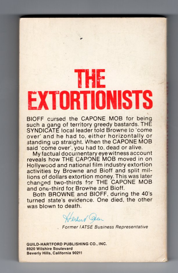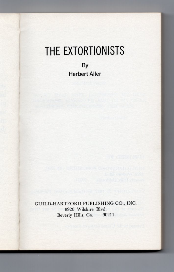 - THE EXTORTIONISTS Beverly Hills, CA Guild-Hartford Publishing Co., Inc. 1972175.00Condition for this paperback is better than good but not quite very good with original price label affixed tto the front cover, some edge wear, some wear to corners and spine ends, light scuffing to covers.