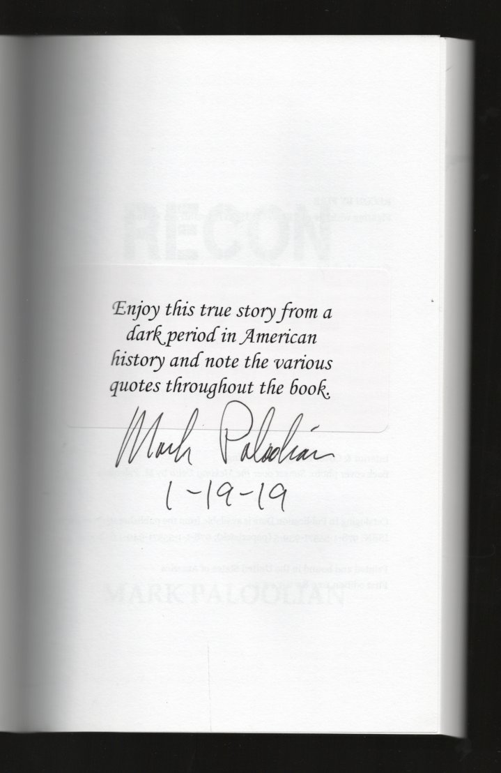 338 with photos.8vo.The true story of the Osage Murders and the birth of the FBI. Basis for the 2023 film directed by Martin Scorsese and starring Leonardo DiCaprio and Robert De Niro.01785View Full Details - RECON BY FIRE Ashland, OR Hellgate Press 201985.00Signed by the author.Condition is near fine with slight edge wear, slight wear to the corners. Affixed on the first blank page is a label "Enjoy this true story...", the author has signed part on this label and part on the page (see second photo).