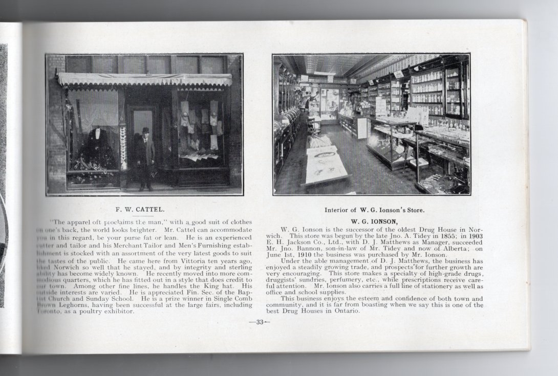 84 pages with photos.Softcover staple-bound book, size is 9 1/4" x 6".Local history of Norwich, Ontario, Canada, "Being a graphic delineation of the retrospective and prospective history of the village of Norwich and Township of North Norwich, together with sketches of people and enterprises that have been prominent for this community its fine status, industrial, commercial and social."01789View Full Details