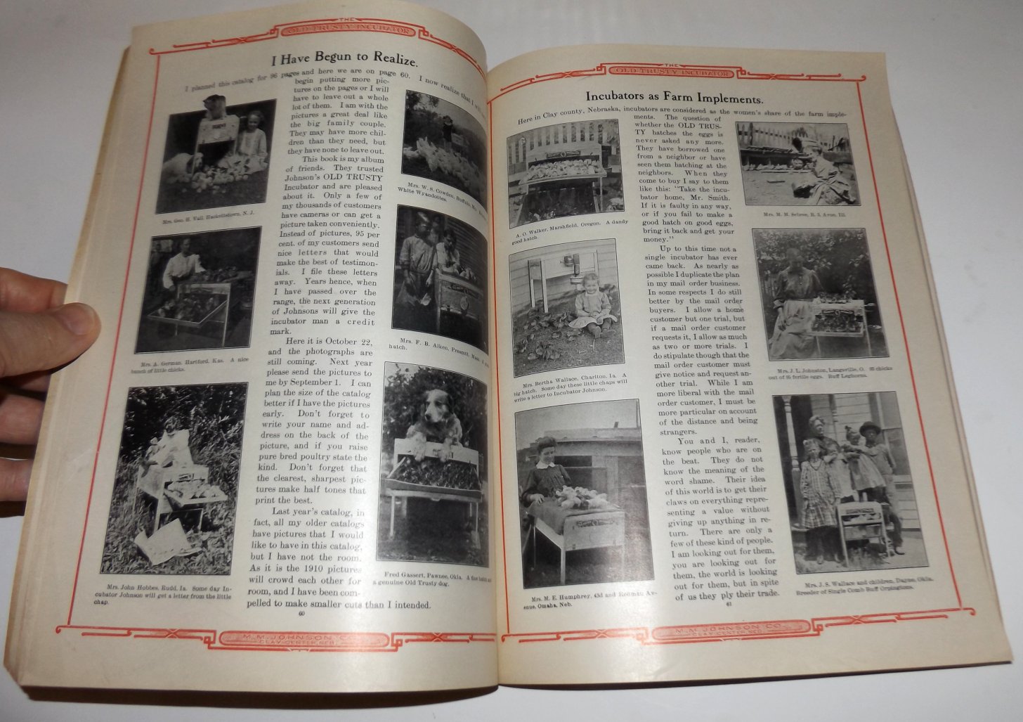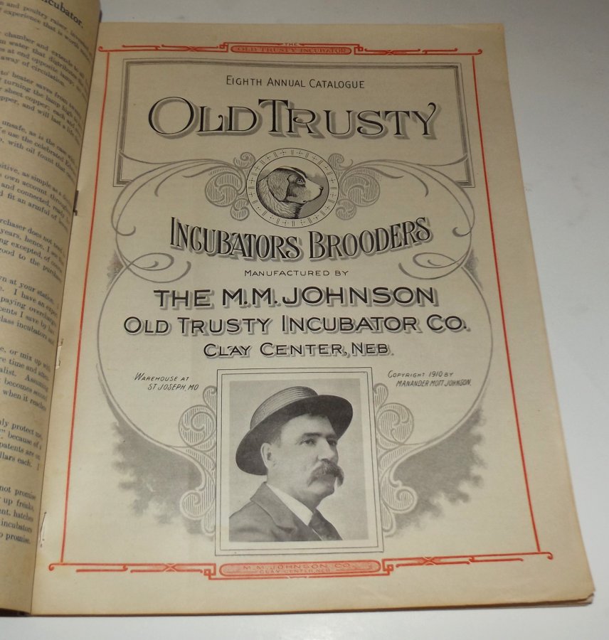 "Valuable to the beginner, the farmetr, small poultry man, and to the man who raises thousands of chicks." - EIGHTH ANNUAL CATALOGUE. OLD TRUSTY INCUBATORS BROODERS (Original 1910 Catalogue) Clay Center, Nebraska M. M. Johnson Co. 1910175.00Condition for this catalogue is very good with some edge wear, some wear to corners and spines, light crease down left side of catalogue.