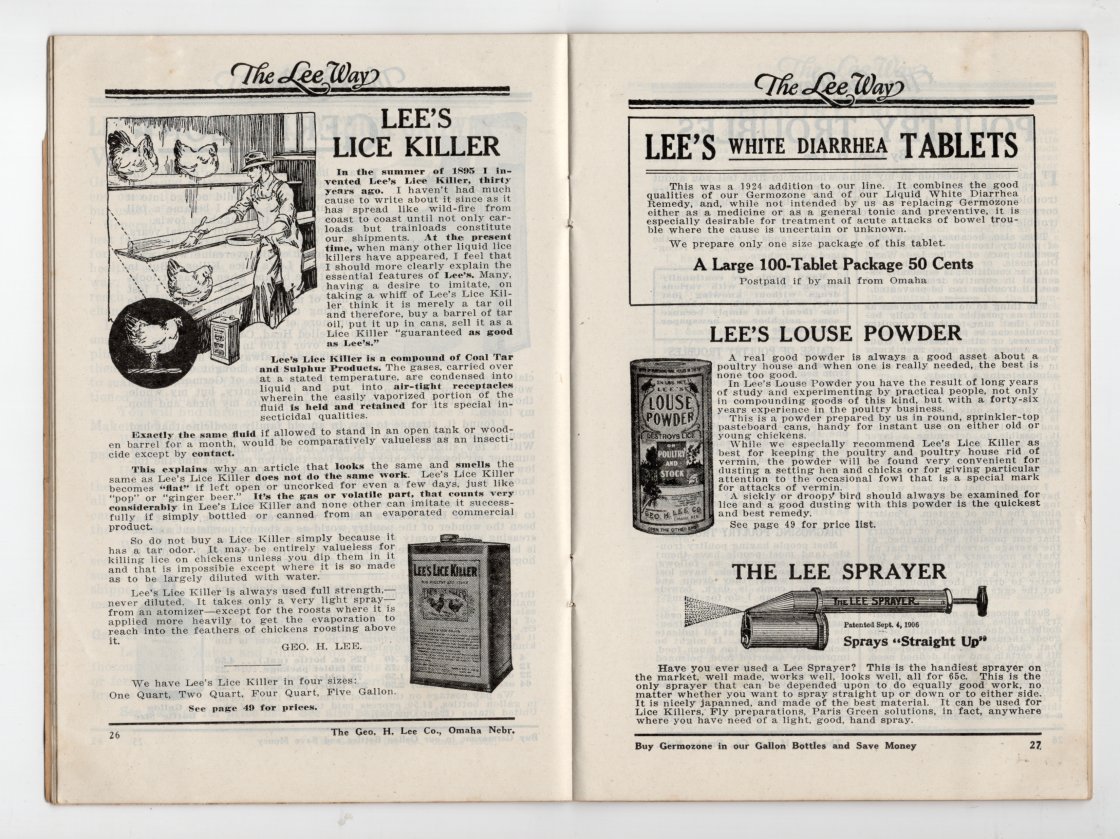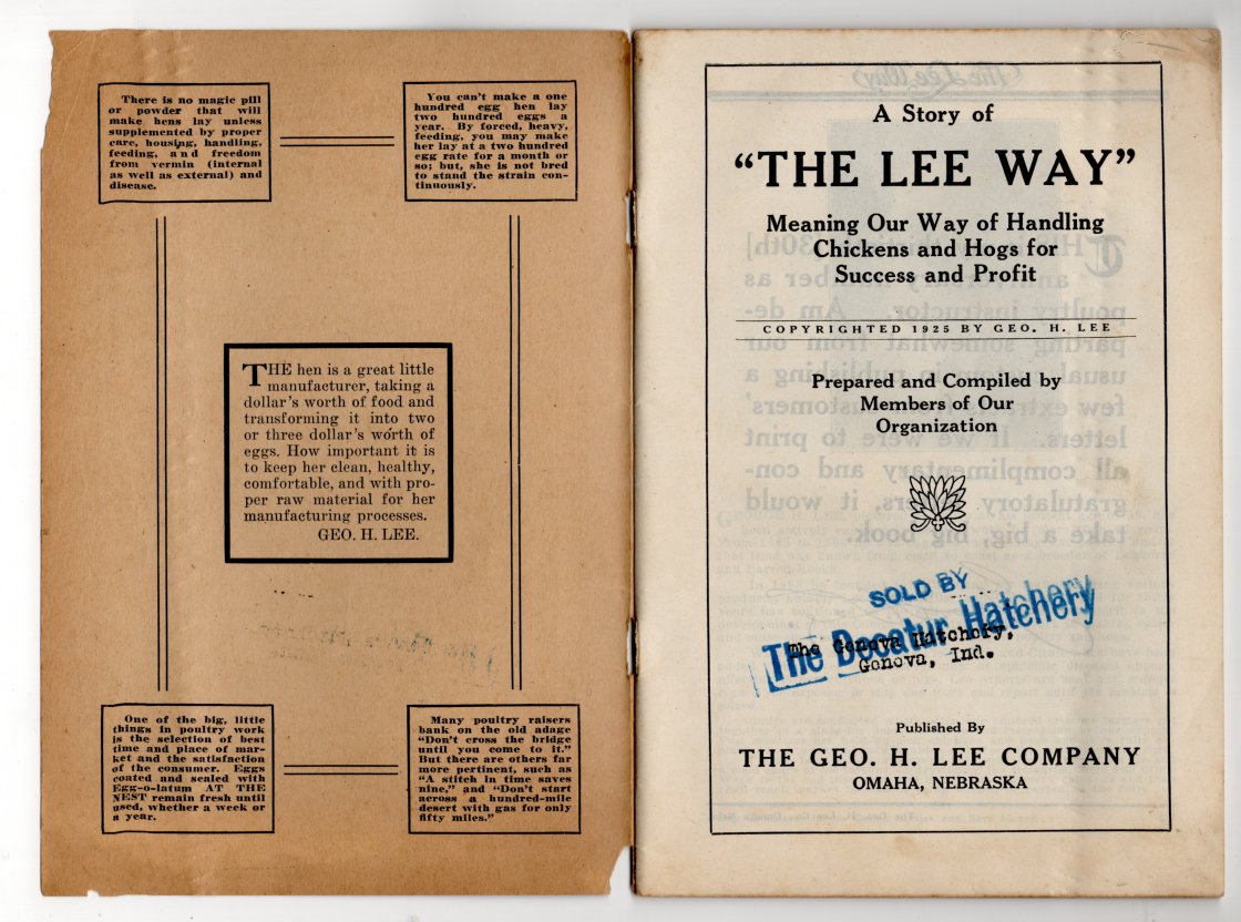 30 pages.8vo.A very scarce publication: "A pot-pourri of memories by the padre of the 42nd battalion sent to all ranks as a Christmas card." Cf. Dornbusch. An informal document covering some of the ups and downs of the 42nd Battalion (Royal Highlanders of Canada), CEF.01788View Full Details - A STORY OF THE LEE WAY PREPARED AND COMPILED BY MEMBERS OF OUR ORGANIZATION Omaha, NE The Geo. H. Lee Company 192545.00Condition for this softcover book is good with some edge wear, some wear to corners and spine ends, small chips to the front cover bottom of spine and top right corner, small tear back cover top of spine, distributor's stamp on first page, small tears along the staples.