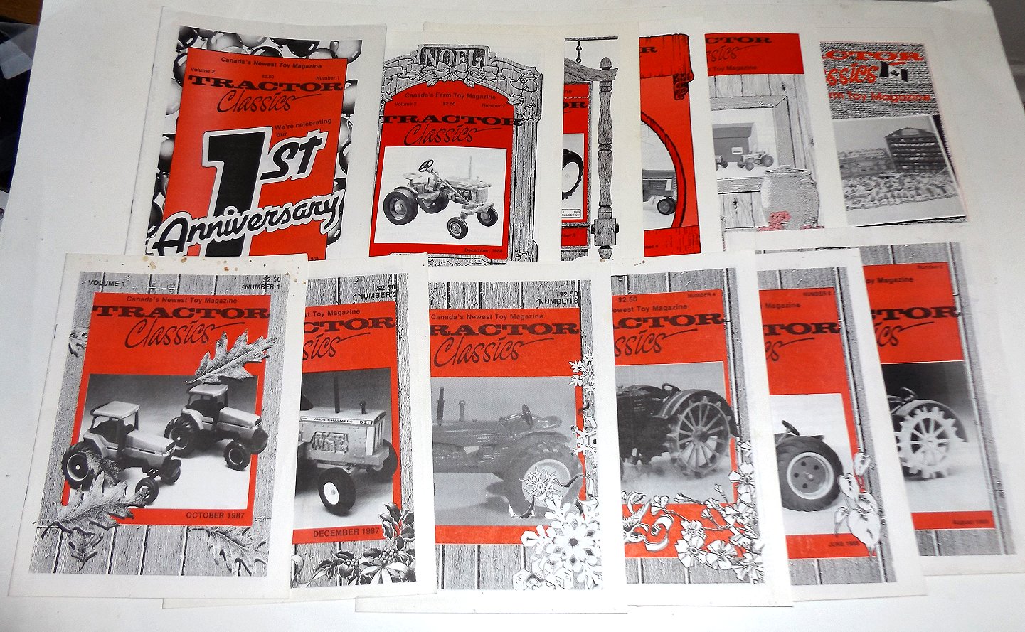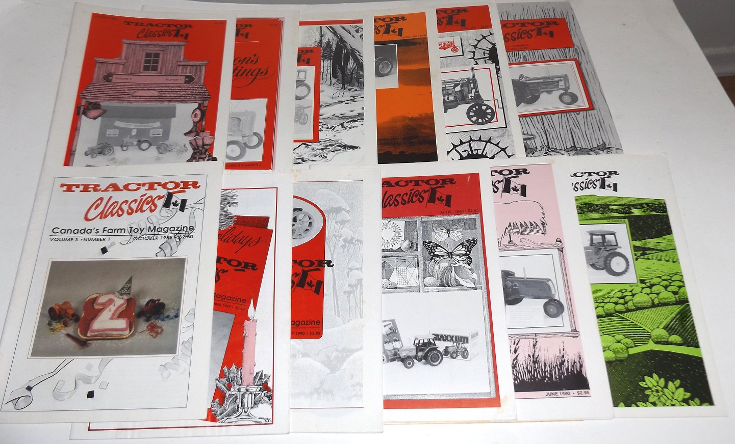 Very scarce. - TRACTOR CLASSICS. Volume 1, Number 1 to Volume 4, Number 6. “Canada’s Farm Toy Magazine”. 8) (First 4 Volumes, 24 issues in total.) Listowel, ON Tractor Classics 1987-1991175.00Journals, 8 ½” x 11”, issues range from 20 pages to 32 pages, most are 32 pages. The first issue has a few stains along the top otherwise all issues are in near fine condition. Journals, size is 8" x 11".Published bimonthly in Listowel, Ontario, devoted to the farm toy tractor collector, with information on shows, collectors, and new tractor toy models available.01834View Full Details