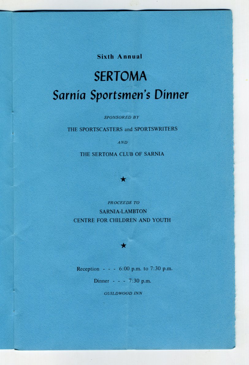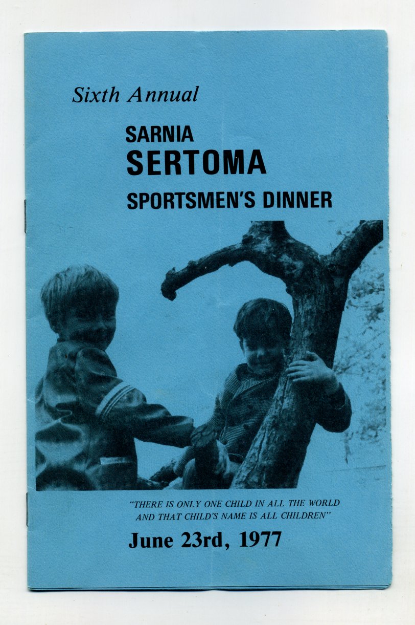 64 pages with illustrations.Small 8vo. (5” x 7”), pictorial wrappers.“"Manhood Perfectly Restored" by Civiale Remedial Agency is a medical guide written in the late 19th century. The publication addresses issues related to male sexual health, particularly focusing on conditions such as impotence, spermatorrhoea, and nervous debility. It presents the Civiale Urethral Treatment, which claims to be an effective and safe remedy for these ailments. The beginning of the text introduces the Civiale Urethral Method and provides a stark warning to men about the consequences of excessive indulgence and self-abuse. It emphasizes the physical and mental toll of such practices, outlining how they can lead to despair and various medical conditions. In this opening, the text serves as both a promotional piece for the Civiale Remedies and an alarmist account highlighting the severities of the discussed health issues, aiming to persuade readers of the urgent need for medical intervention and treatment through their specific methods.” (Project Gutenberg description).01792View Full Details - SIXTH ANNUAL SARNIA SERTOMA SPORTMEN'S DINNER JUNE 23rd, 1977 Program (1977 Program signed by Three Sporting Legends: Joe Louis, Maurice Richard, Gordie Howe, and 3 others). (Sarnia, ON) no publisher (1977)400.00Condition for this program is very good with light crease down middle, some wear to the corners. 8 pages (including covers).Program size is 8 1/2" x 5 1/2”.Original program from the 1977 Sarnia (Ontario, Canada) SERTOMA Sportmen's Dinner. This program has been signed on the back cover by 6 of the guests, 3 of which are legendary, Joe Louis (former heavy-weight champion), hockey greats Maurice Richard and Gordie Howe, also signed by hockey player Wayne Merrick, then Detroit Tigers leftfielder Ben Ogilvie, and Father Nick Marro.01835View Full Details