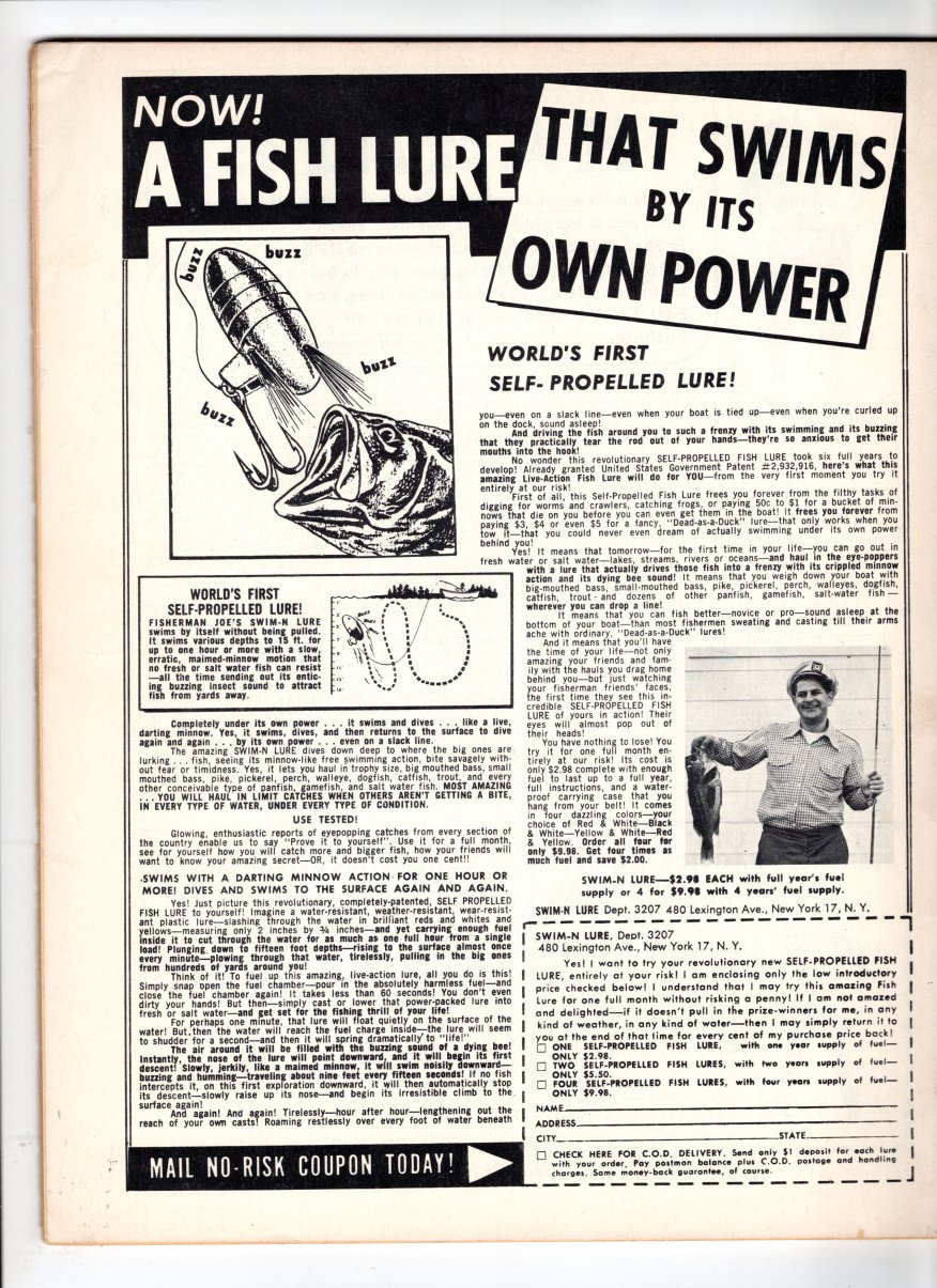 64 pages.Magazine, size is 8First issue of this 1956 magazine dedicated to protecting the consumer from rip-offs. This issue has articles on auto repairs, fake chinchilla furs, weight-reducing scams. This magazine contains some pretty questionable ads itself.00165View Full Details - FRAUDS AND RACKETS45.00